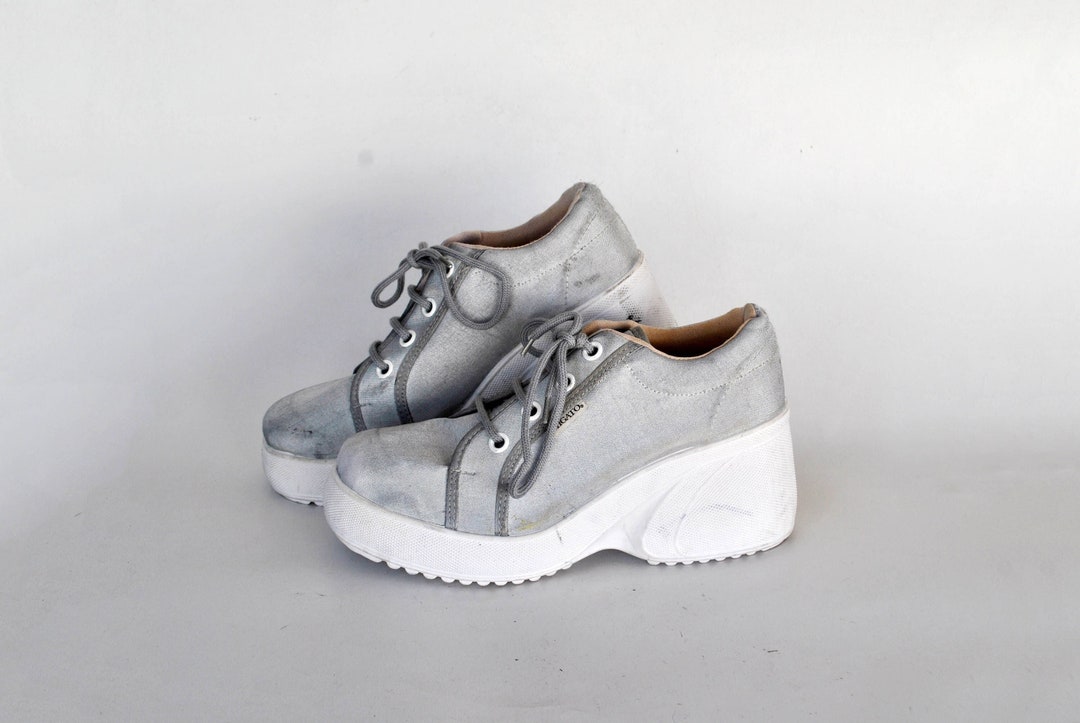 Silver Bounding Platform Evening Shoes silver Platform Shiny - Etsy