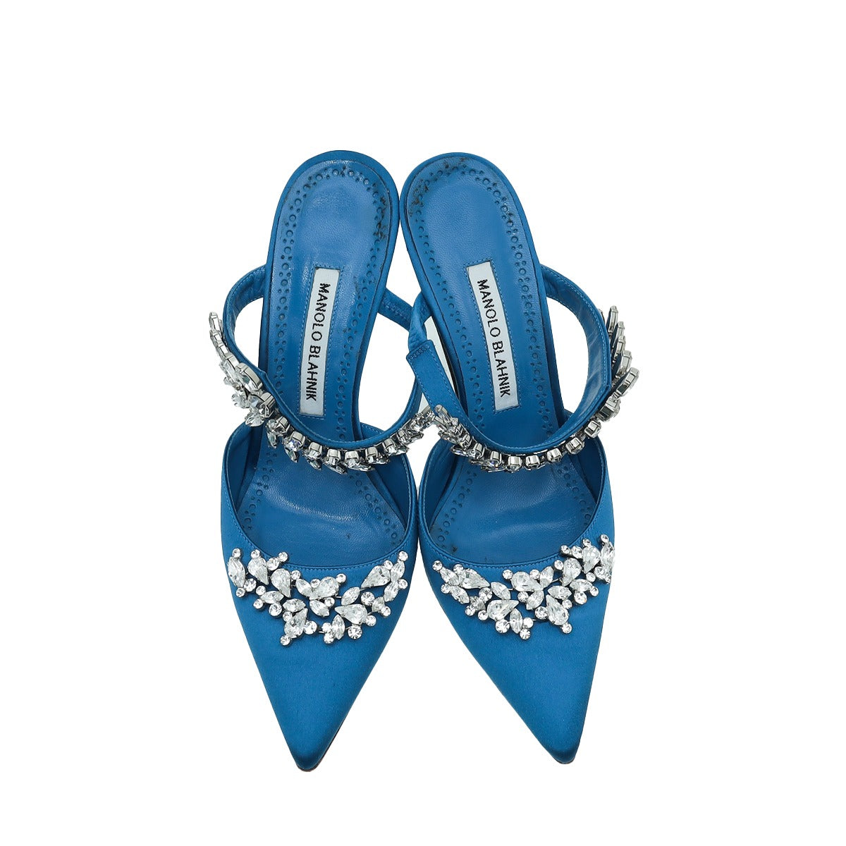 Manolo Blahnik blue Lurum 90 satin jewel detail mules $1,190 - Buy Online SS19 - Quick Shipping