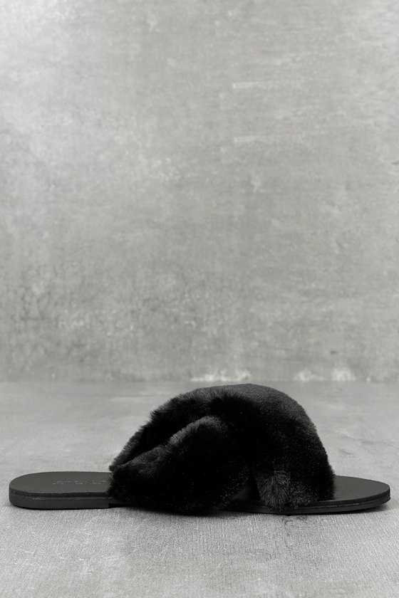 Chic Black Sandals - Faux Fur Slide Sandals - Black Slides - $21.00 - Lulus