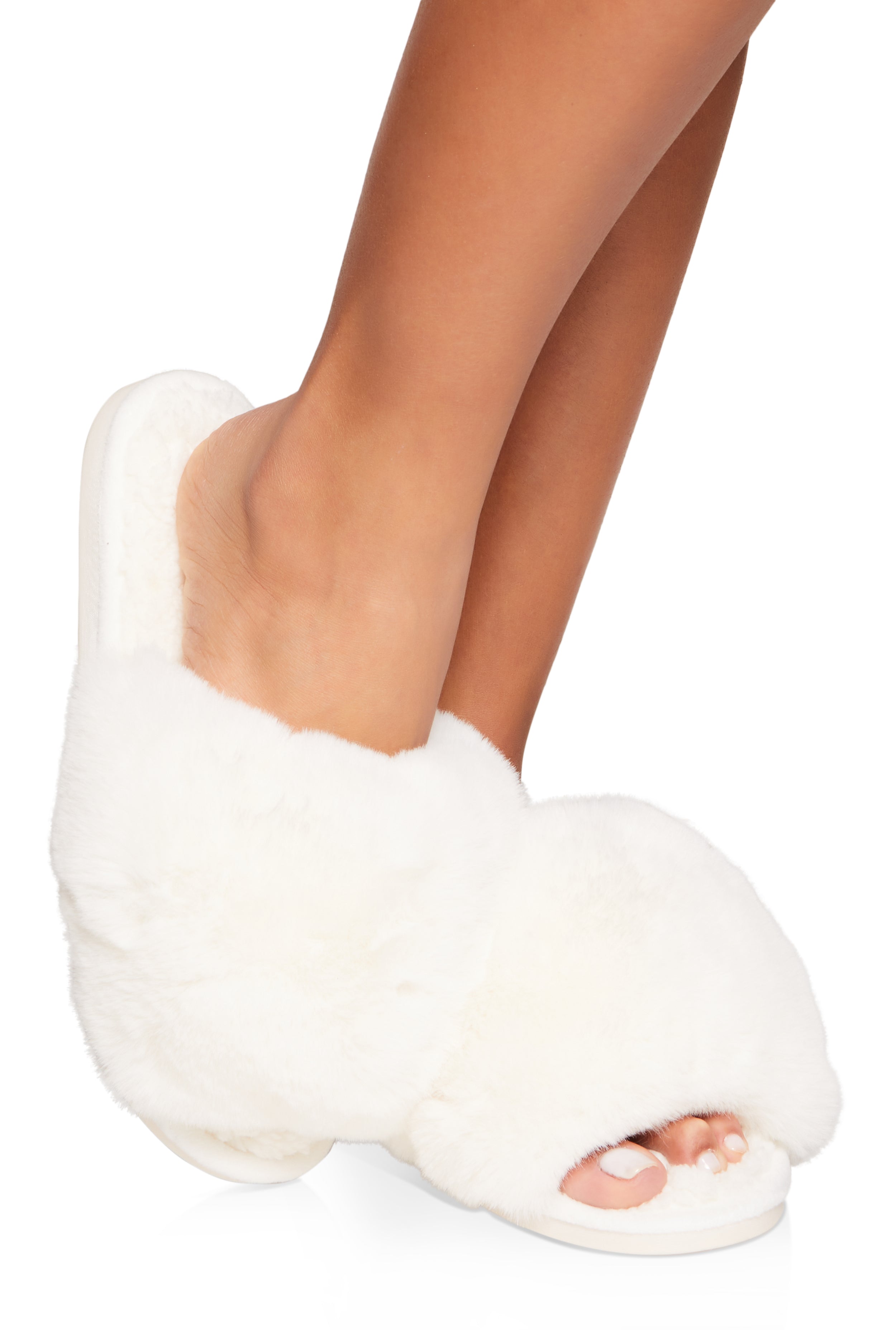 Faux Fur Slide Flat Wedding Sandals | Faux fur slides, Bridesmaid slippers, Fluffy sandals