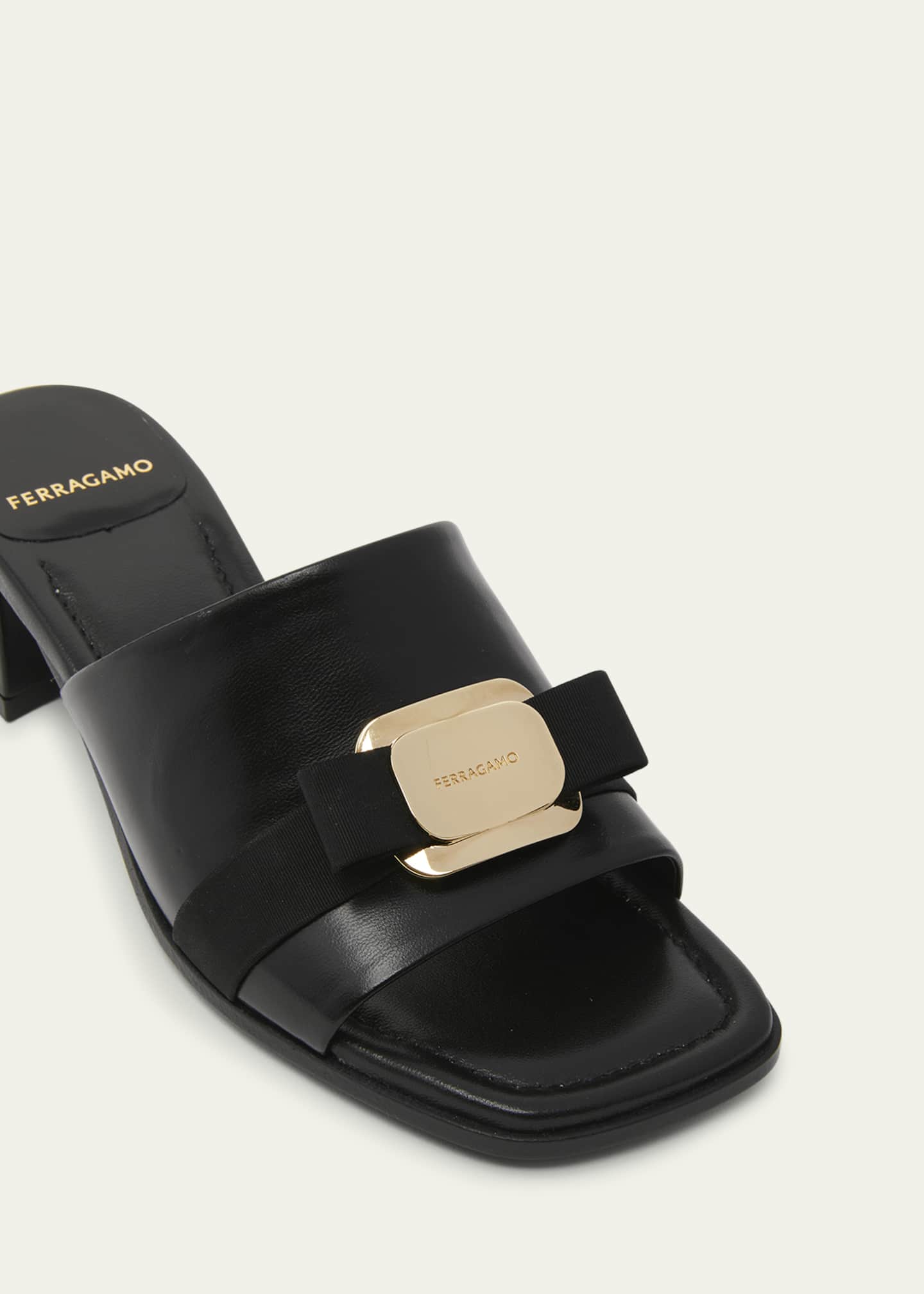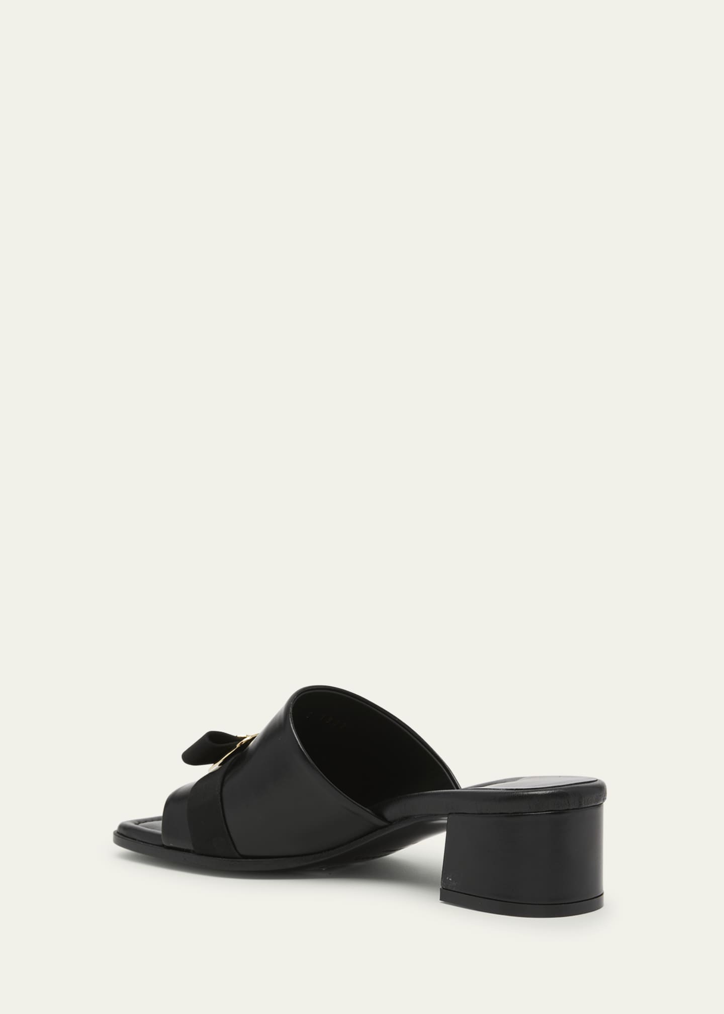 FERRAGAMO Zelie Leather Bow Mule Sandals - Nero | Editorialist