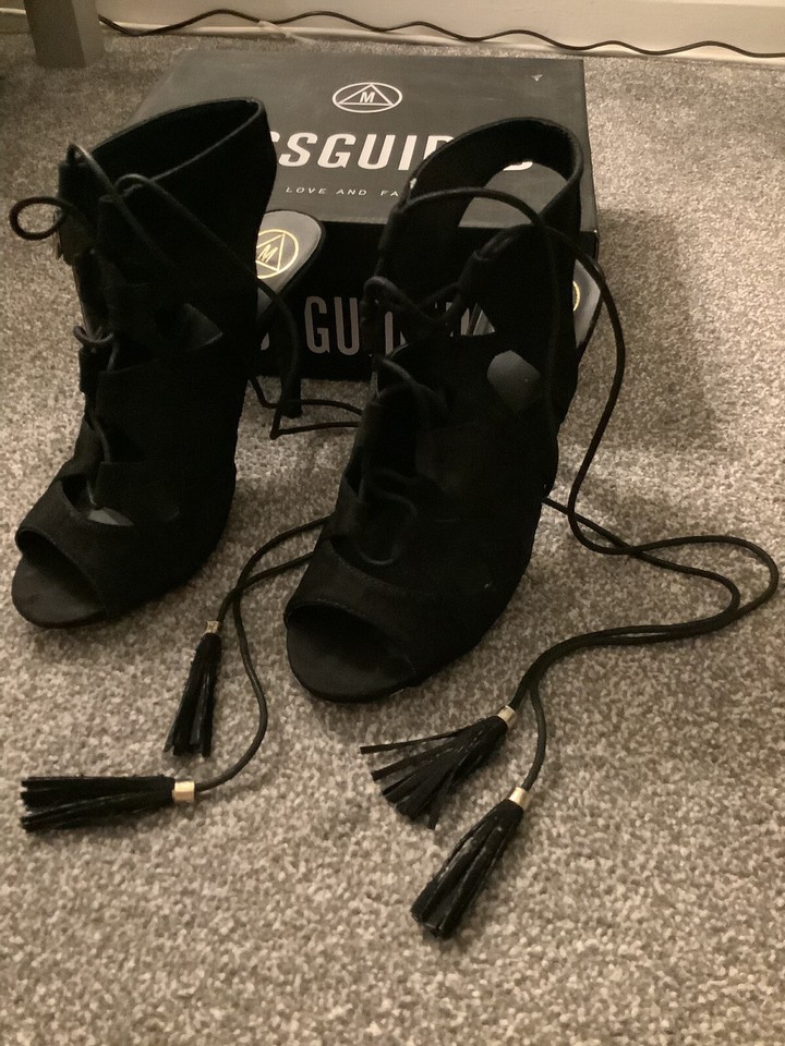 Missguided - Strappy Heeled Sandals Black | Black sandals heels, Black lace up shoes, Strappy