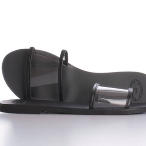 Women's Black Clear Leather Flat Slides Transparent Greek | Etsy