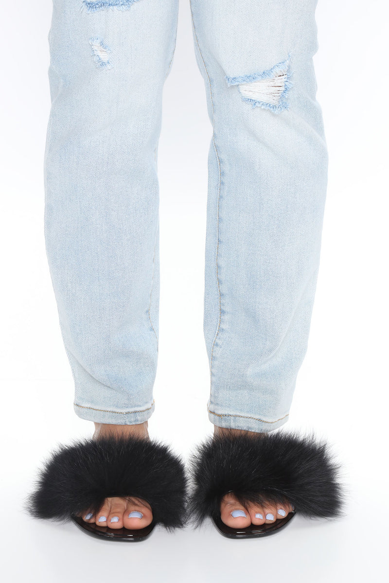 Chic Black Sandals - Faux Fur Slide Sandals - Black Slides - $21.00 - Lulus