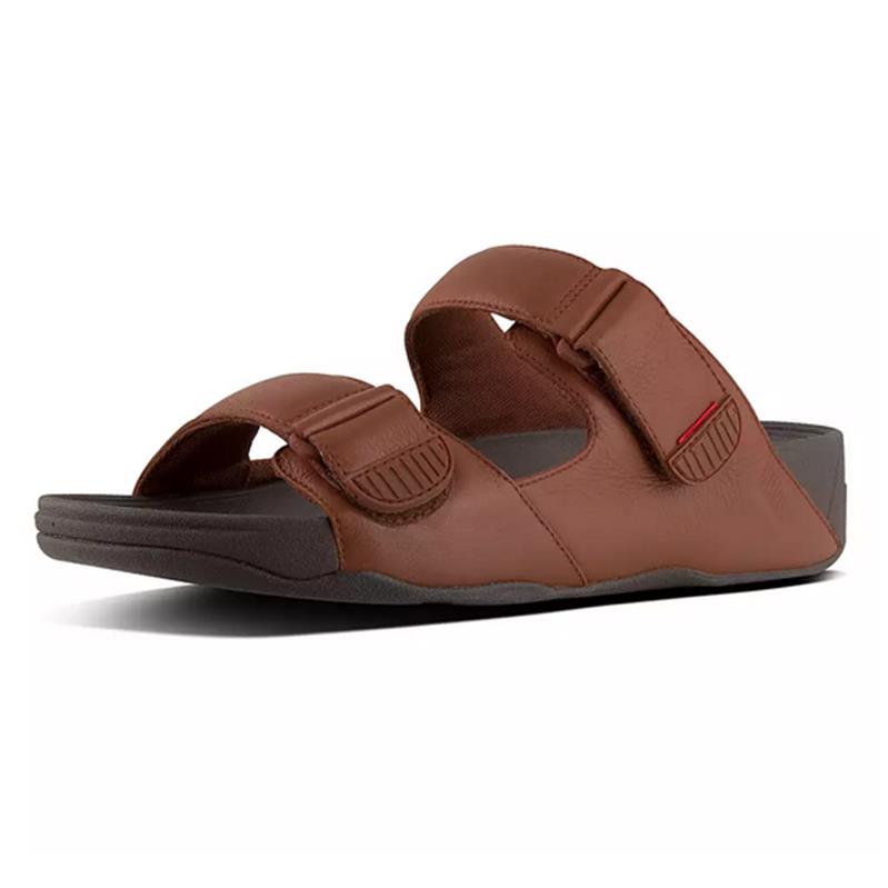 FitFlop Gogh Moc Mens Adjustable Leather Slide - Dark Tan | Coconut Creek Gift Shop