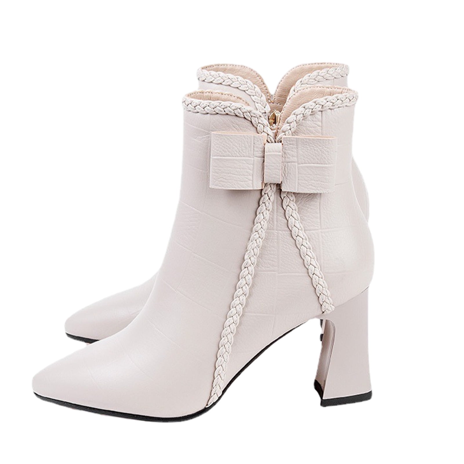 Lovskoo 2024 Women's Dressy Ankle Boots Hidden Wedge Chunky Stacked Heel Zipper Boots Vintage