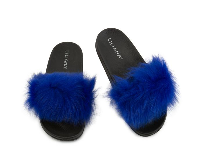 LILIANA Fanzzy-1 Fur Slides FANZZY-1-BLU - Shiekh