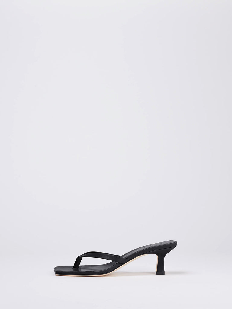 Aeyde | WILMA Black Leather Heeled Thong Sandal