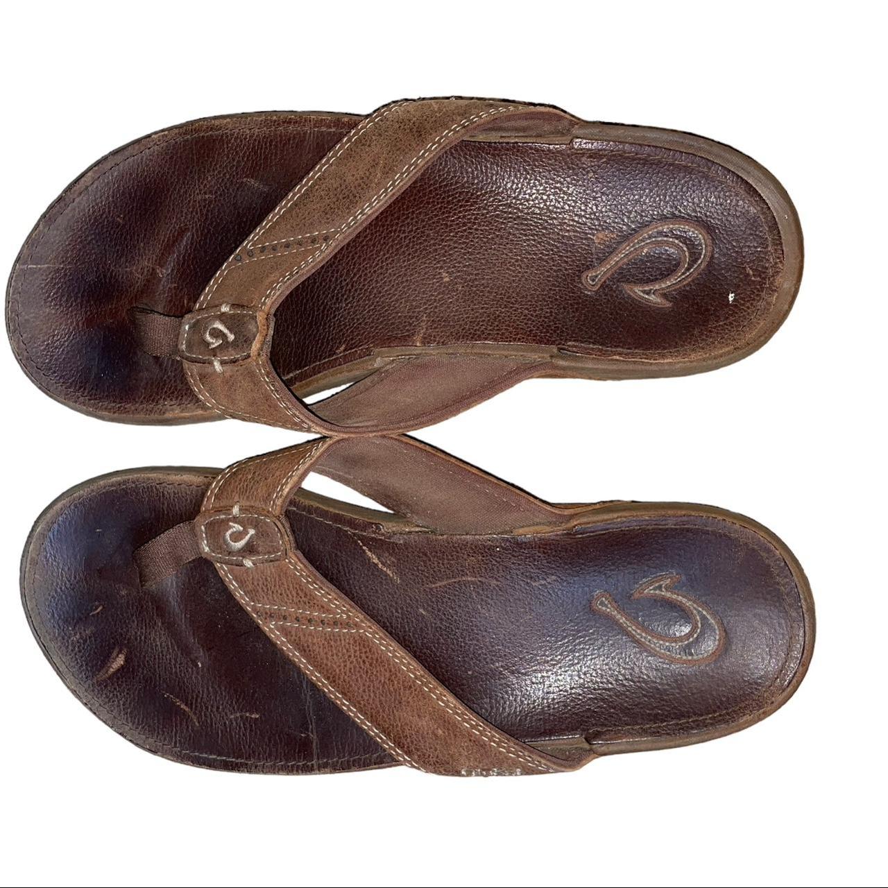 Olukai NUI Men's Size: 11 Brown Leather Thong Sandals Flip Flops Slip Ons | SidelineSwap | Buy