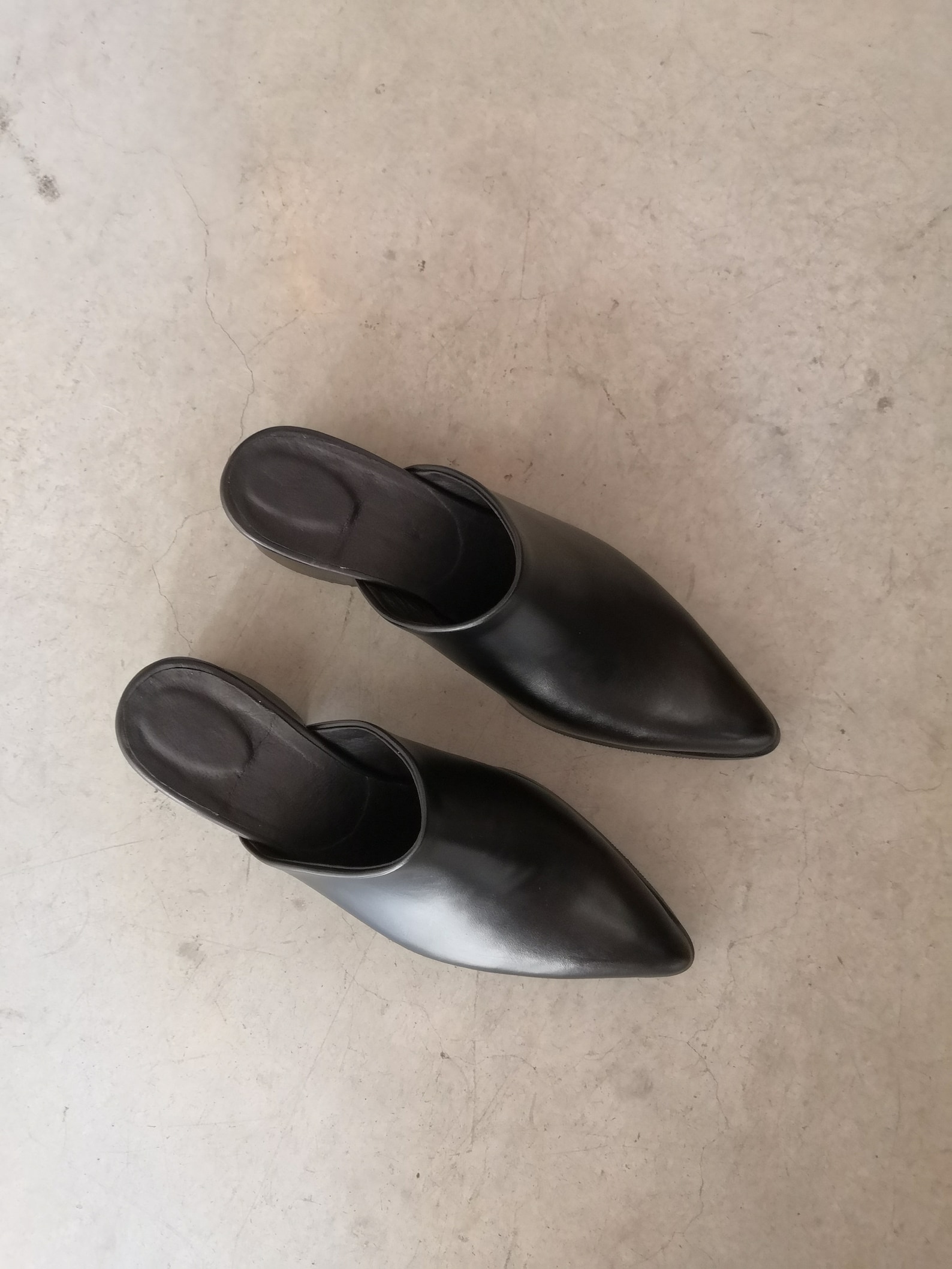 Black leather mules | Black leather mules, Leather mules, Heeled mules