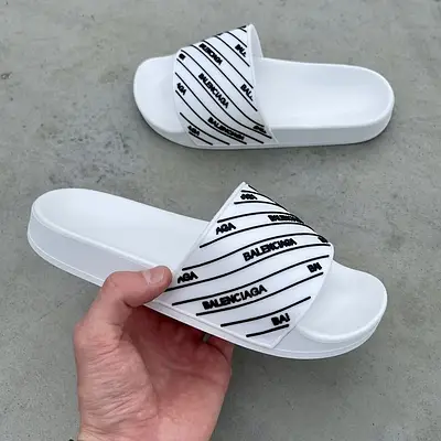 Balenciaga White Logo Pool Slides Balenciaga