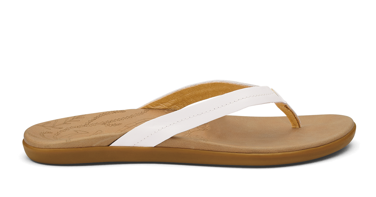Honu Womenâs Leather Beach Sandals - Bright White / Golden Sand | OluKai | OluKai Australia