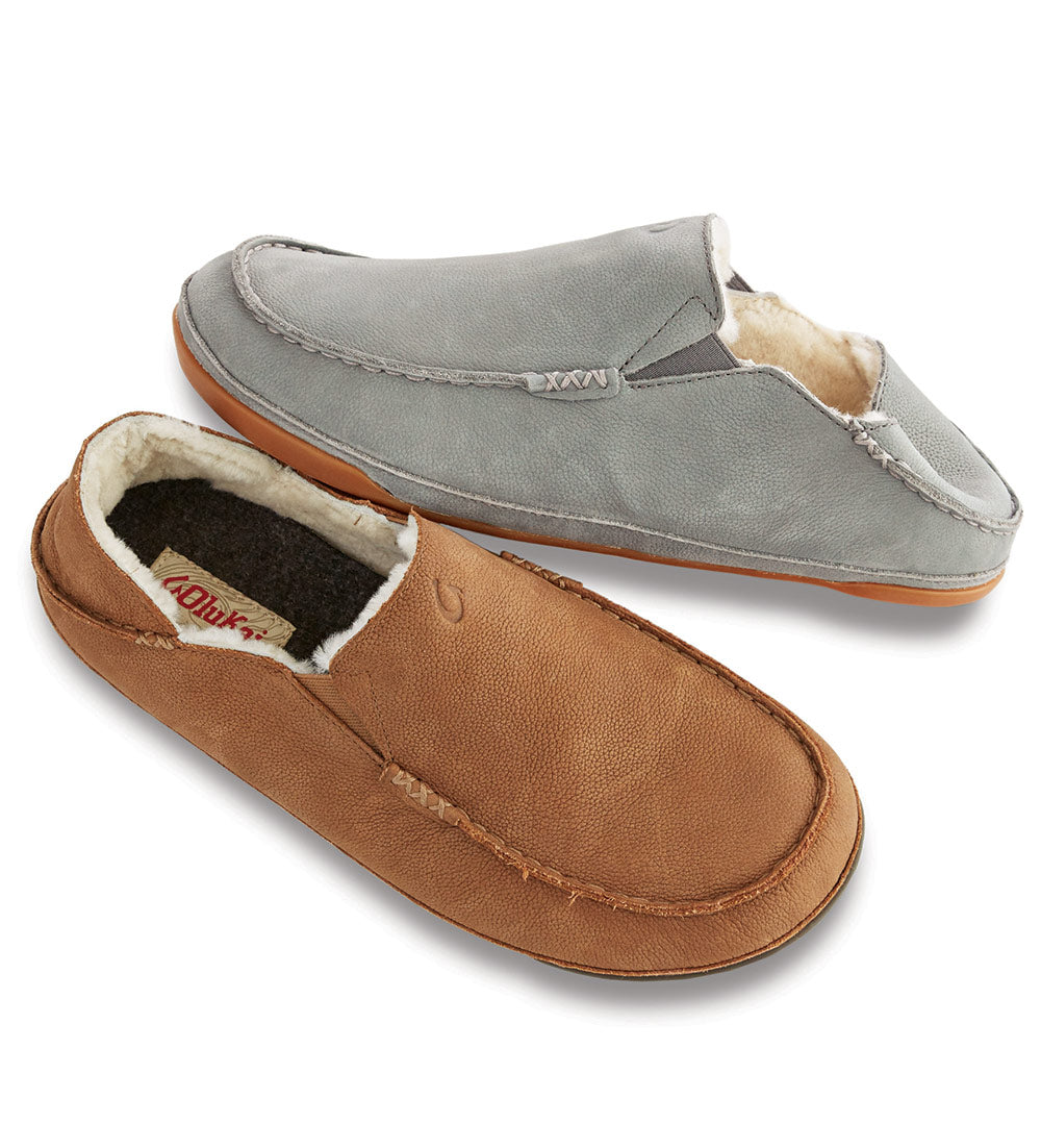 Buy OluKai Kipuka Hulu Men's Leather Slippers, Premium Nubuck Leather Slip On Shoes, Shearling
