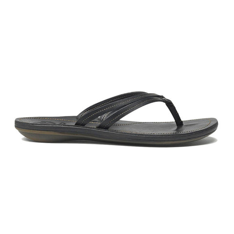OluKai Womens 'Aukai Leather Sandals - Black / Black â Rumors Skate and Snow