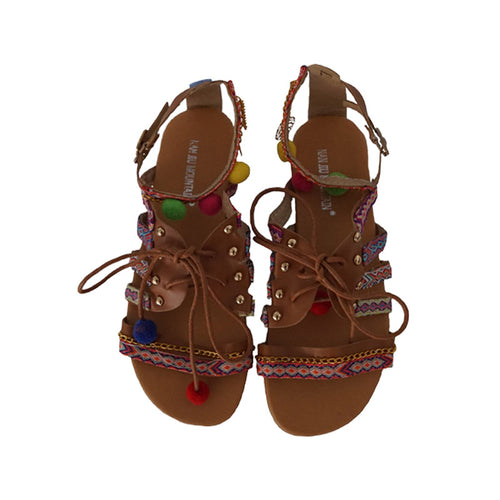 Ethnic Bohemian Gladiator Pompon Strappy Sandals for women - wanahavit