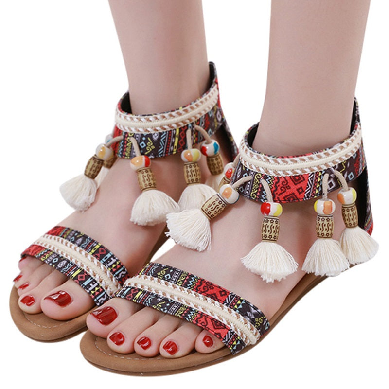 Hip Summer Bohemian Ethnic Style Flat Rhinestone Sandals