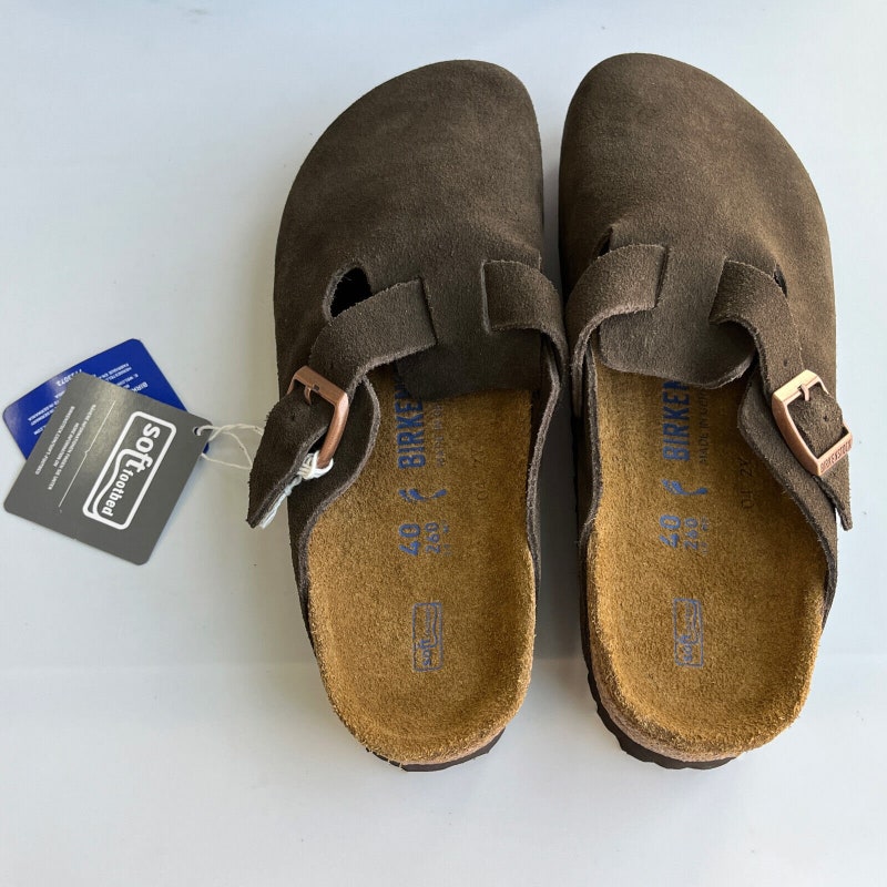 boston suede leather taupe clogs - size EU 37/US - Depop