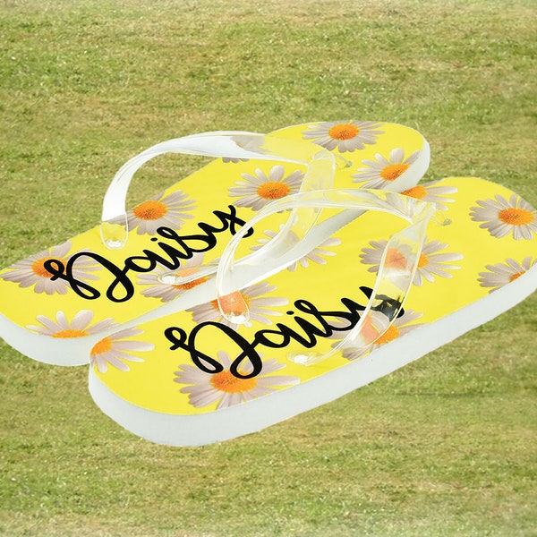 Daisy flip flops, sunflower flip flops, footwear, shoes