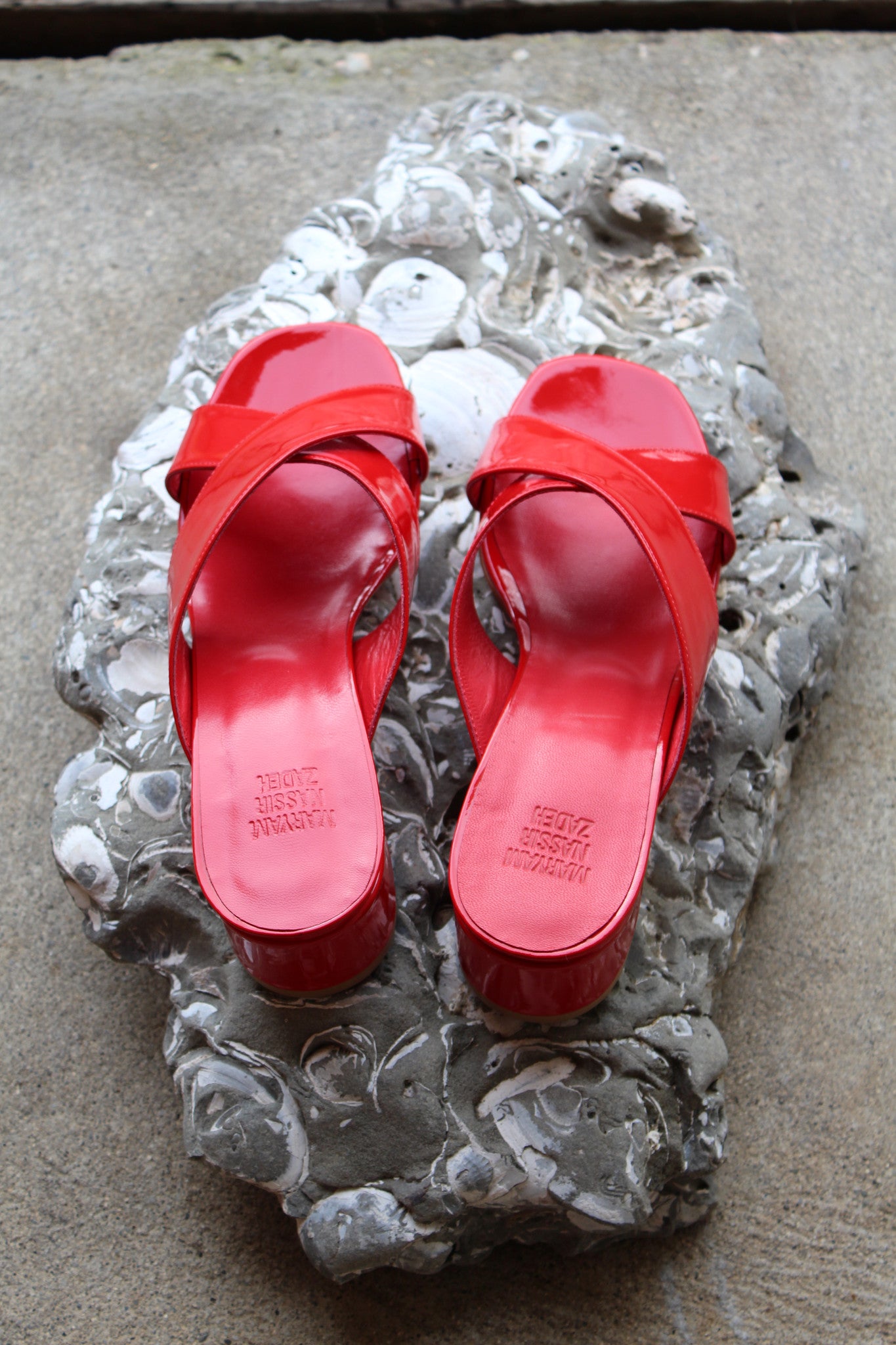 MNZ Lauren Slide Cherry Red Patent Leather â Beklina