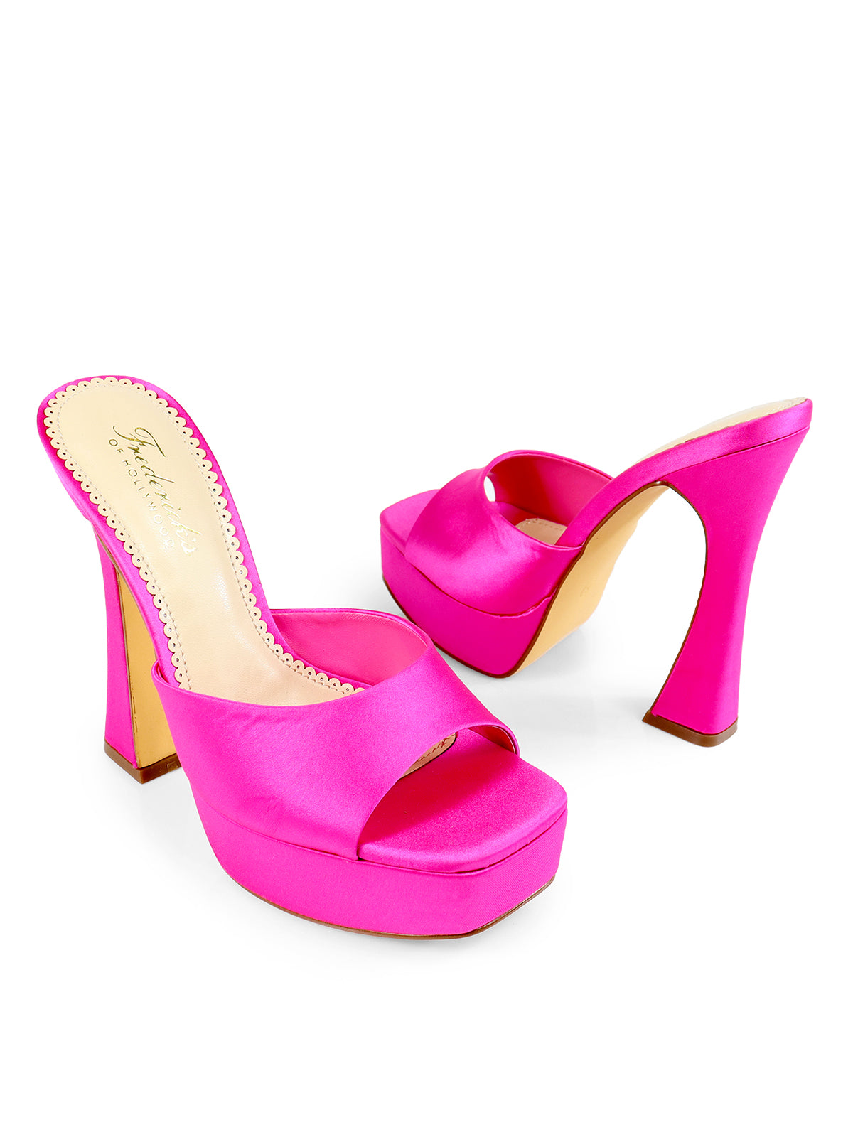 Elaina Platform Mule Heel in Hot Pink - Frederick's Of Hollywood