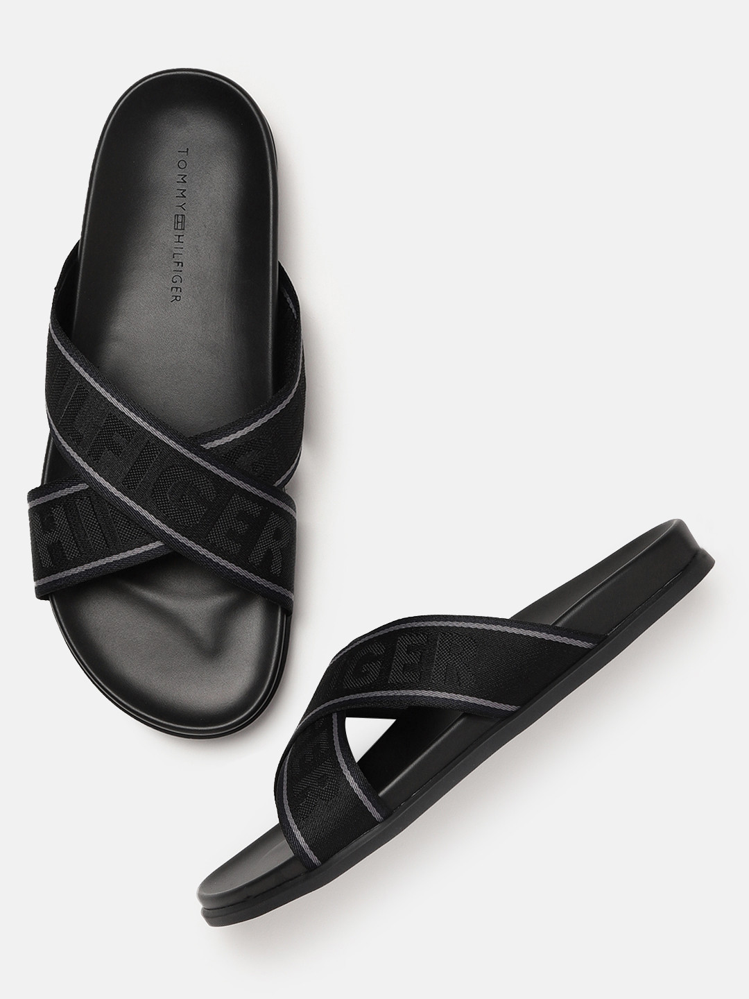 Buy Tommy Hilfiger Men Black Leather Comfort Sandals - Sandals for Men 11662118 | Myntra