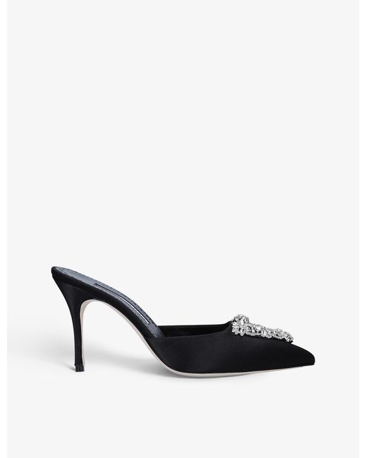 Manolo Blahnik Lurum 90mm Crystal- Embellished Satin Mules In Black | ModeSens | Manolo blahnik