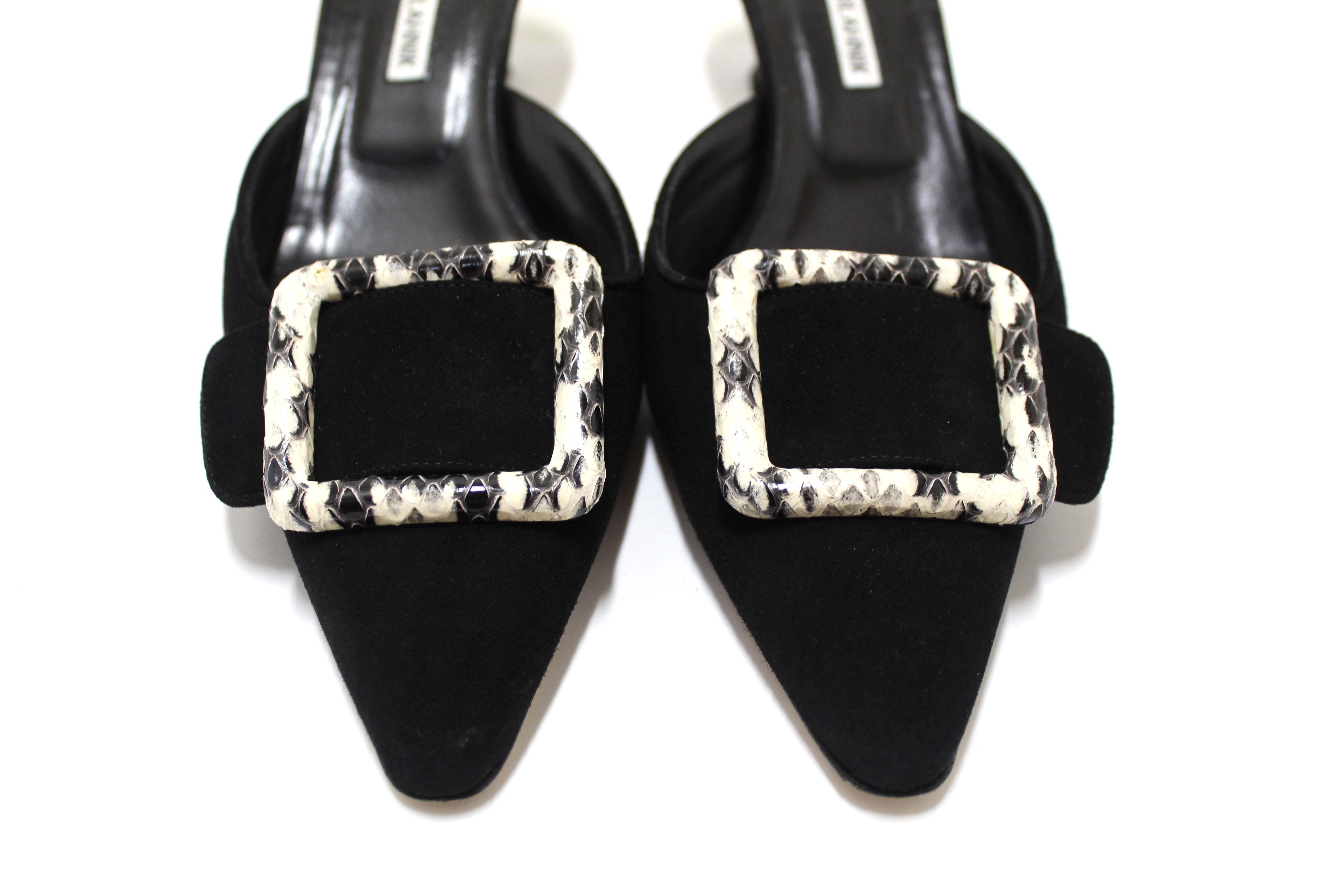 Manolo Blahnik Maysale Buckled Mules | Black | FARFETCH