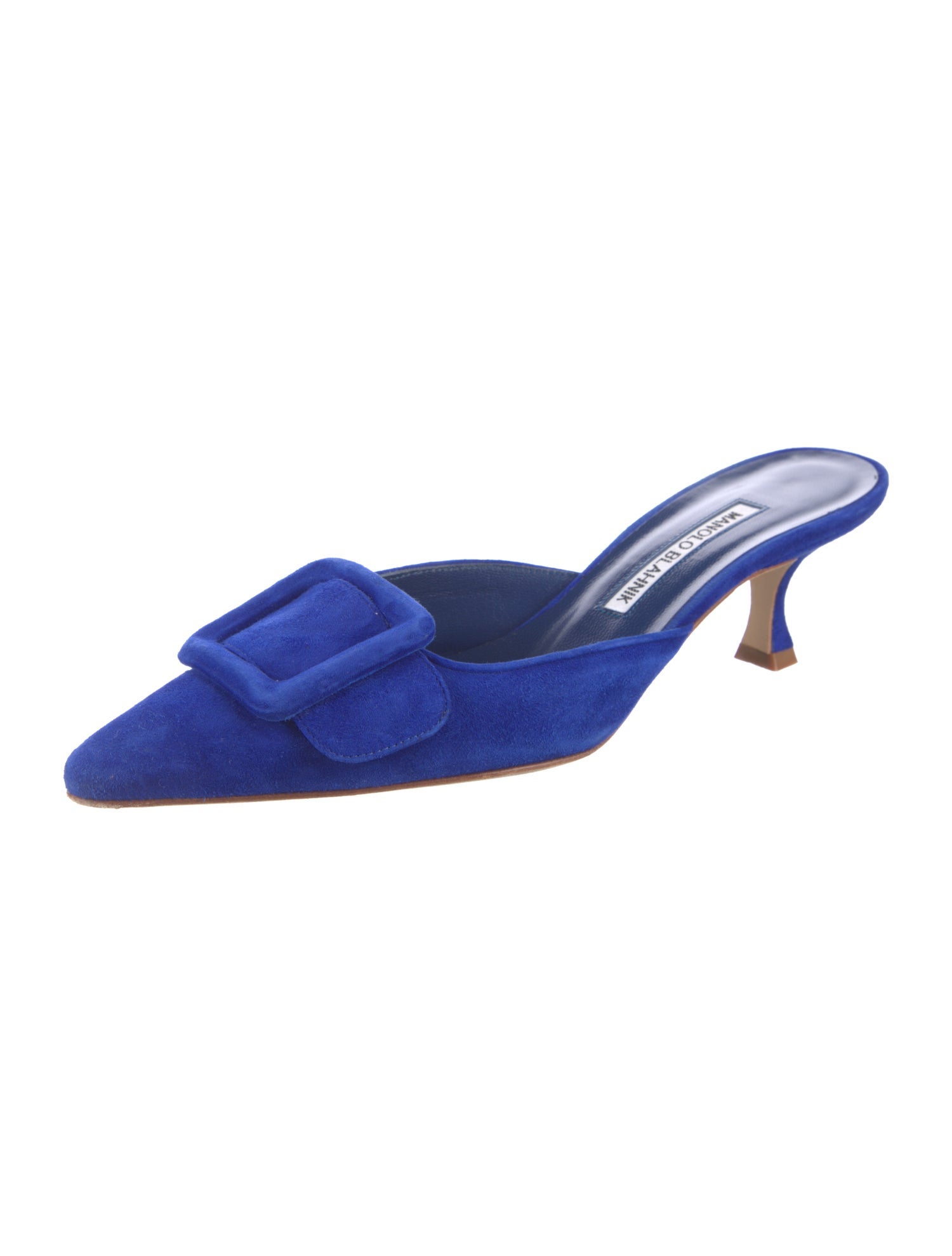 Manolo Blahnik Suede Mules - Blue Pumps, Shoes - MOO314904 | The RealReal
