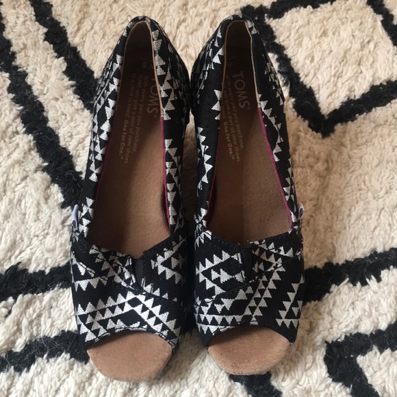 Toms | Shoes | Toms Wedge Sandals Black Silver Shimmer | Poshmark