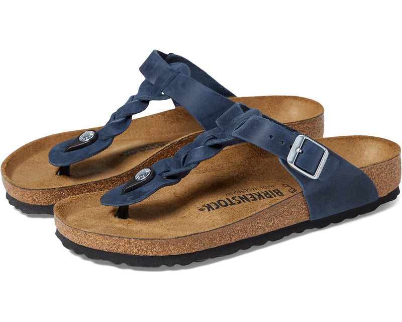 Gizeh Braided | Oiled Leather | Navy â Birkenstock Midtown