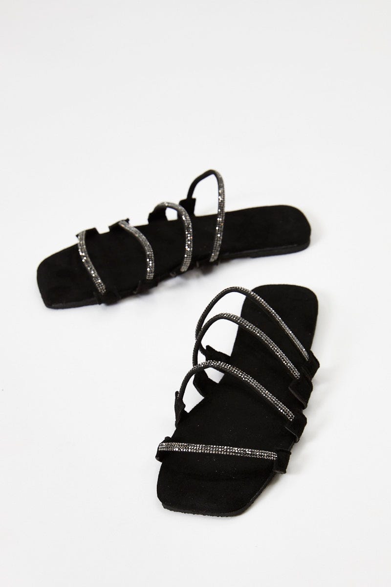 Flat Metallic Slides with Multi Strap Detail - Bash.com