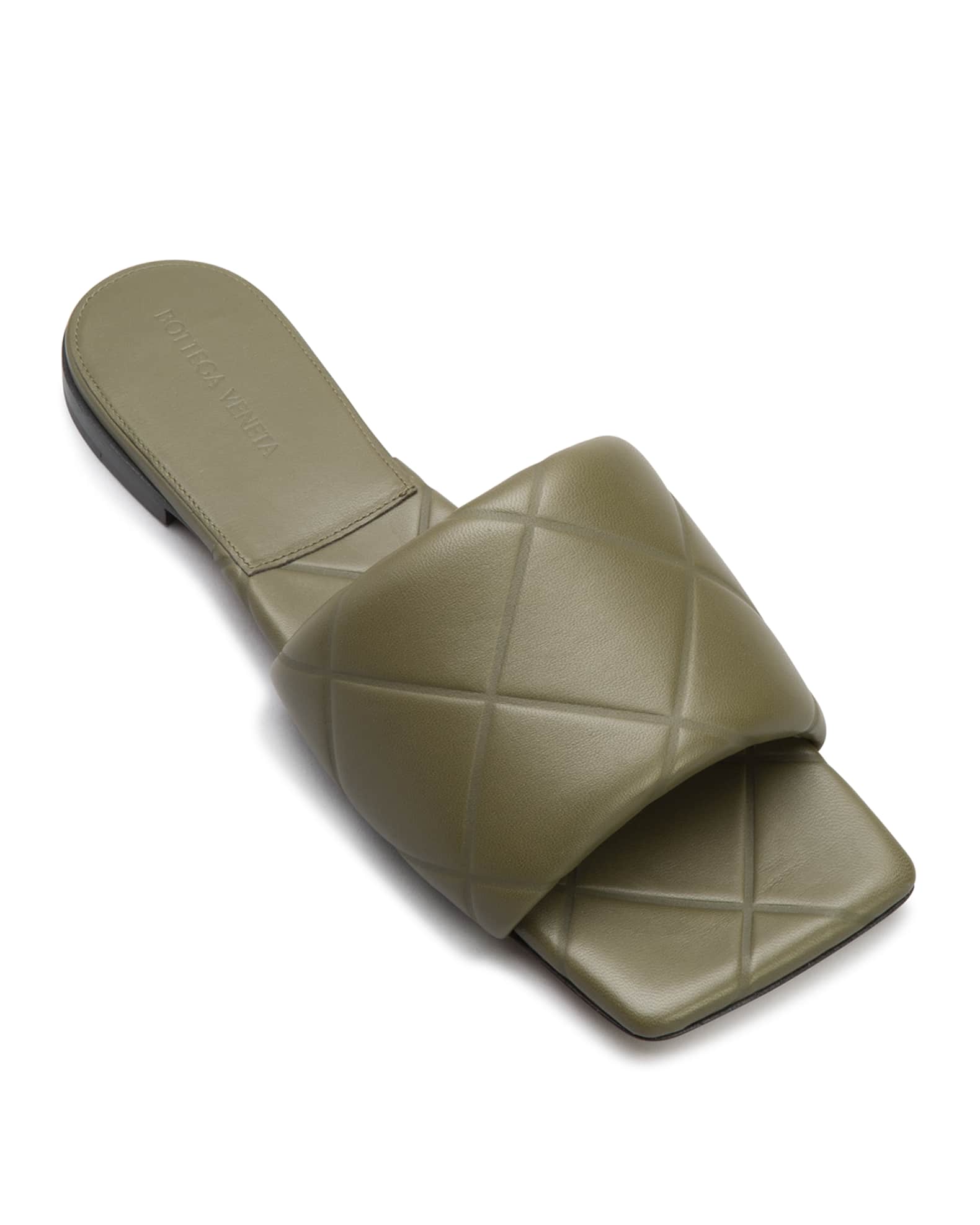 BOTTEGA VENETA Lido Flat Sandals Quilted Leather Blac⦠- Gem