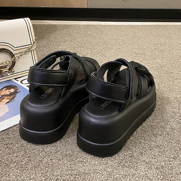 Black Strappy Chunky Sole Flatform Sandals | Footwear | PrettyLittleThing CA