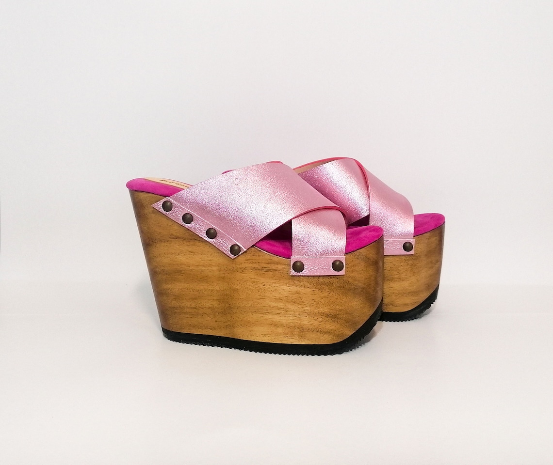 Elevate Your Style With 90s-inspired Leather Platform Sandals. Platform Heels, Wood Heels