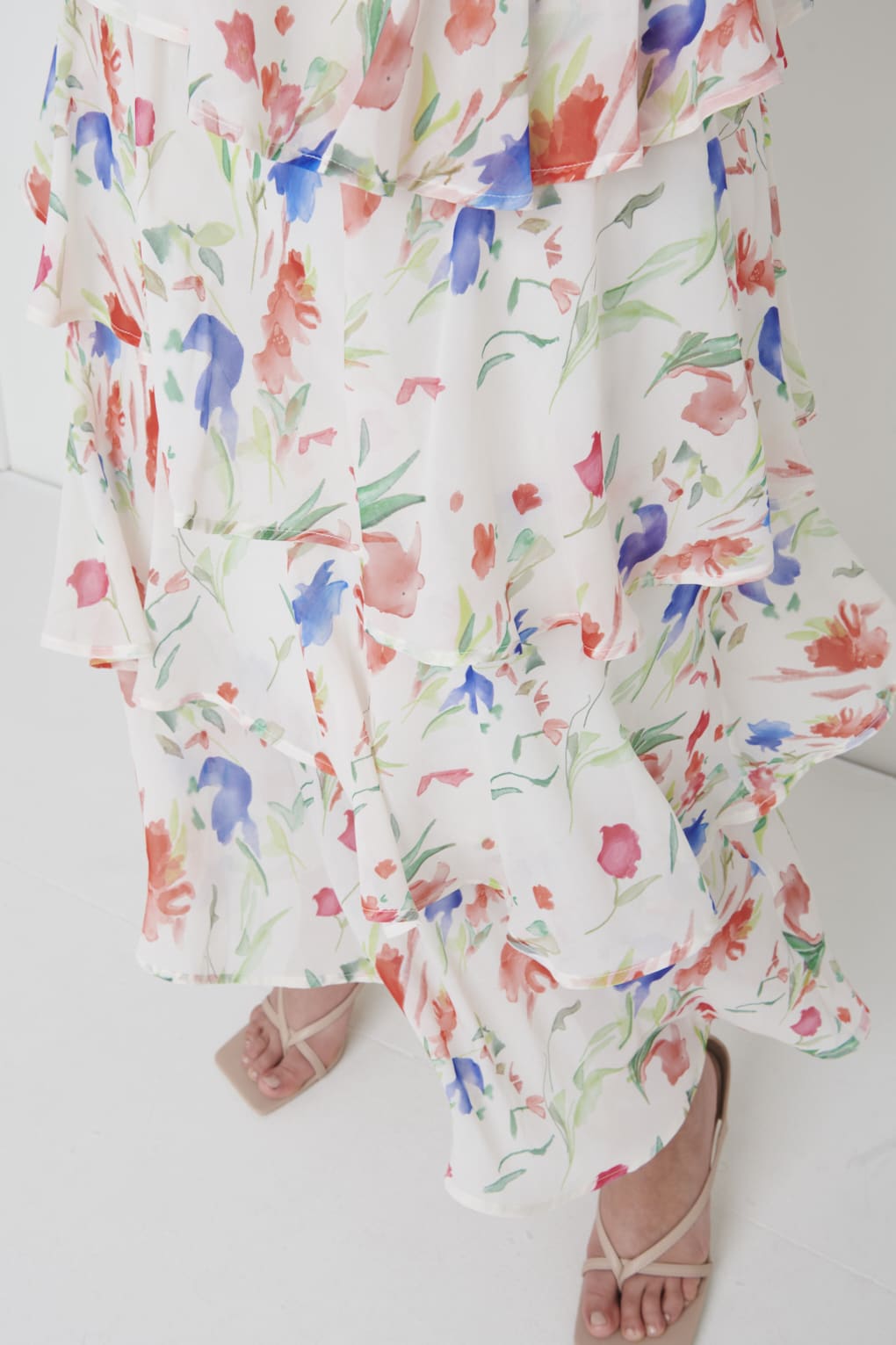 Ashton Ruffle Midi Dress Patchwork Floral | Pretty Lavish | SilkFred US