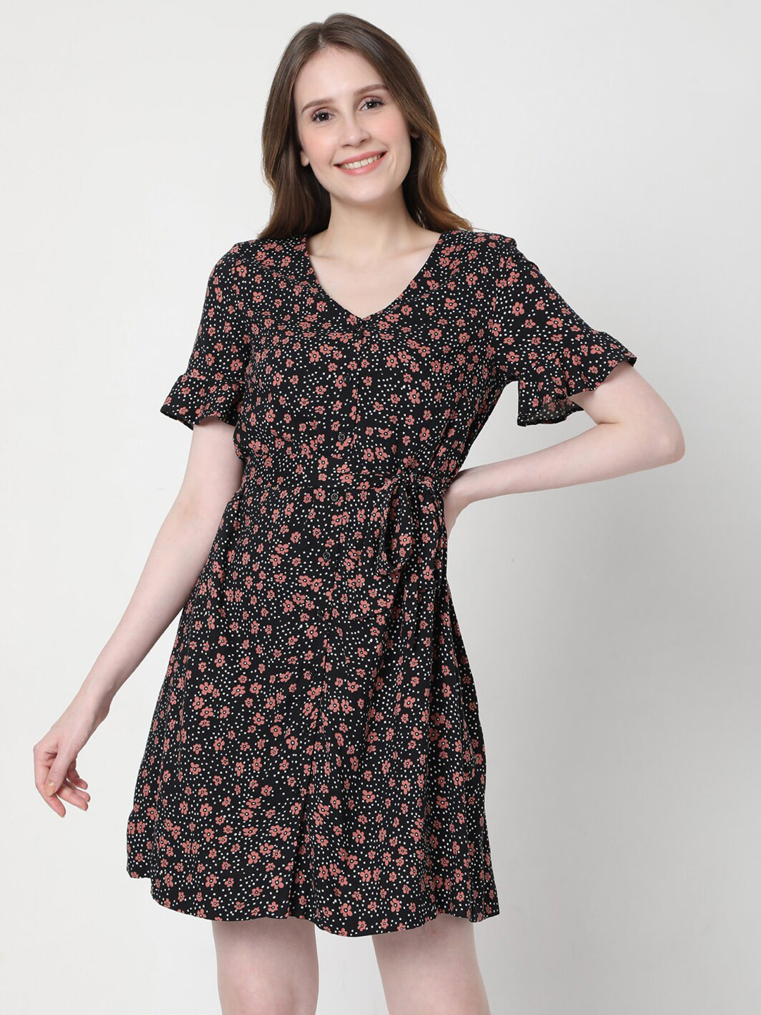 Buy Vero Moda Black Floral Print A Line Dress - Dresses for Women 948466 | Myntra