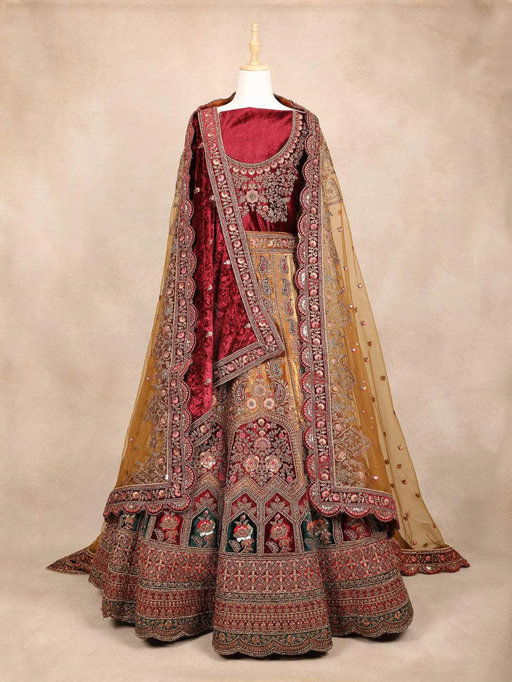 Gorgeous Maroon Lehenga Choli With Peacock Motifs