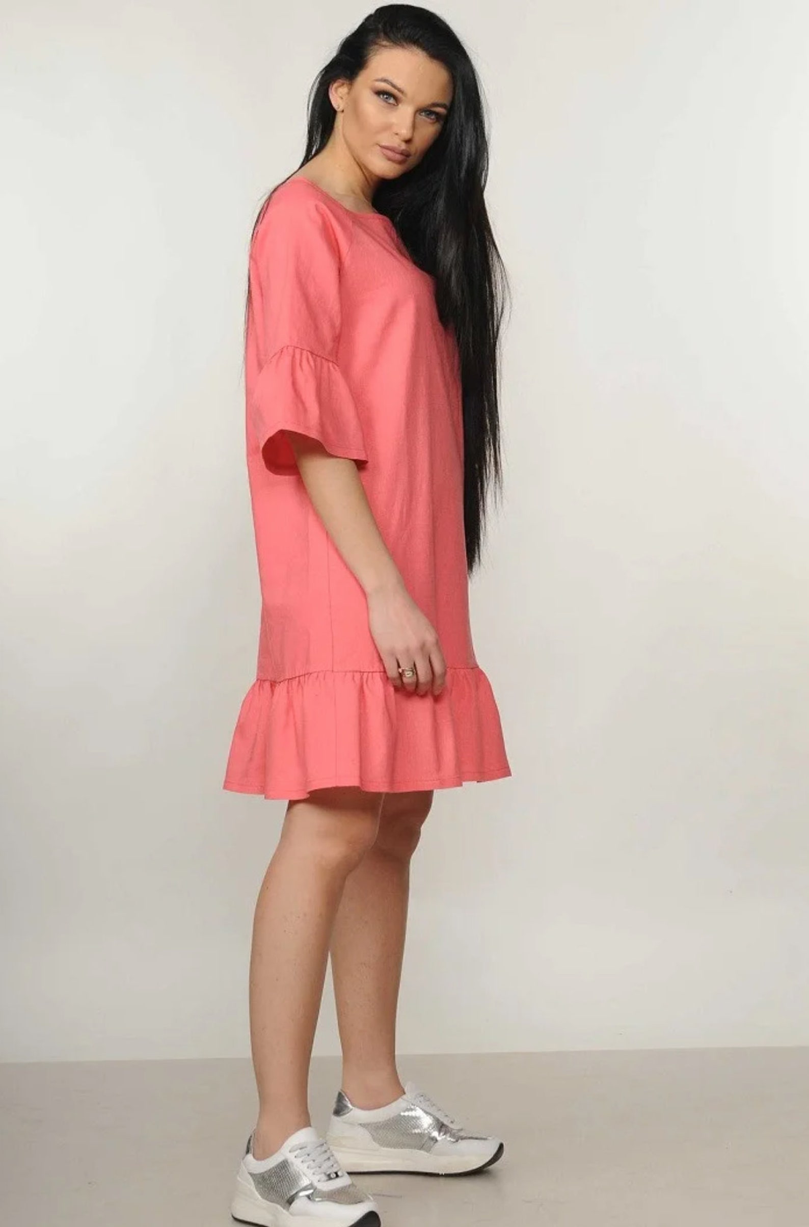 Linen Ruffle Dress Pink Linen Dress Party Linen Dress - Etsy