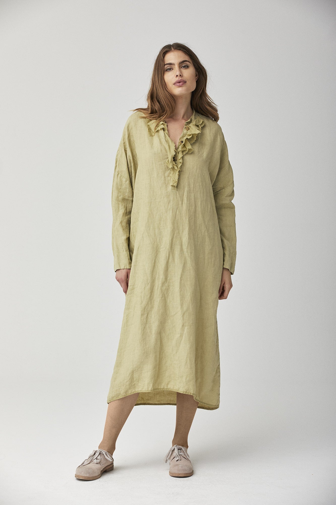 Linen Ruffle Sleeves Long Dress