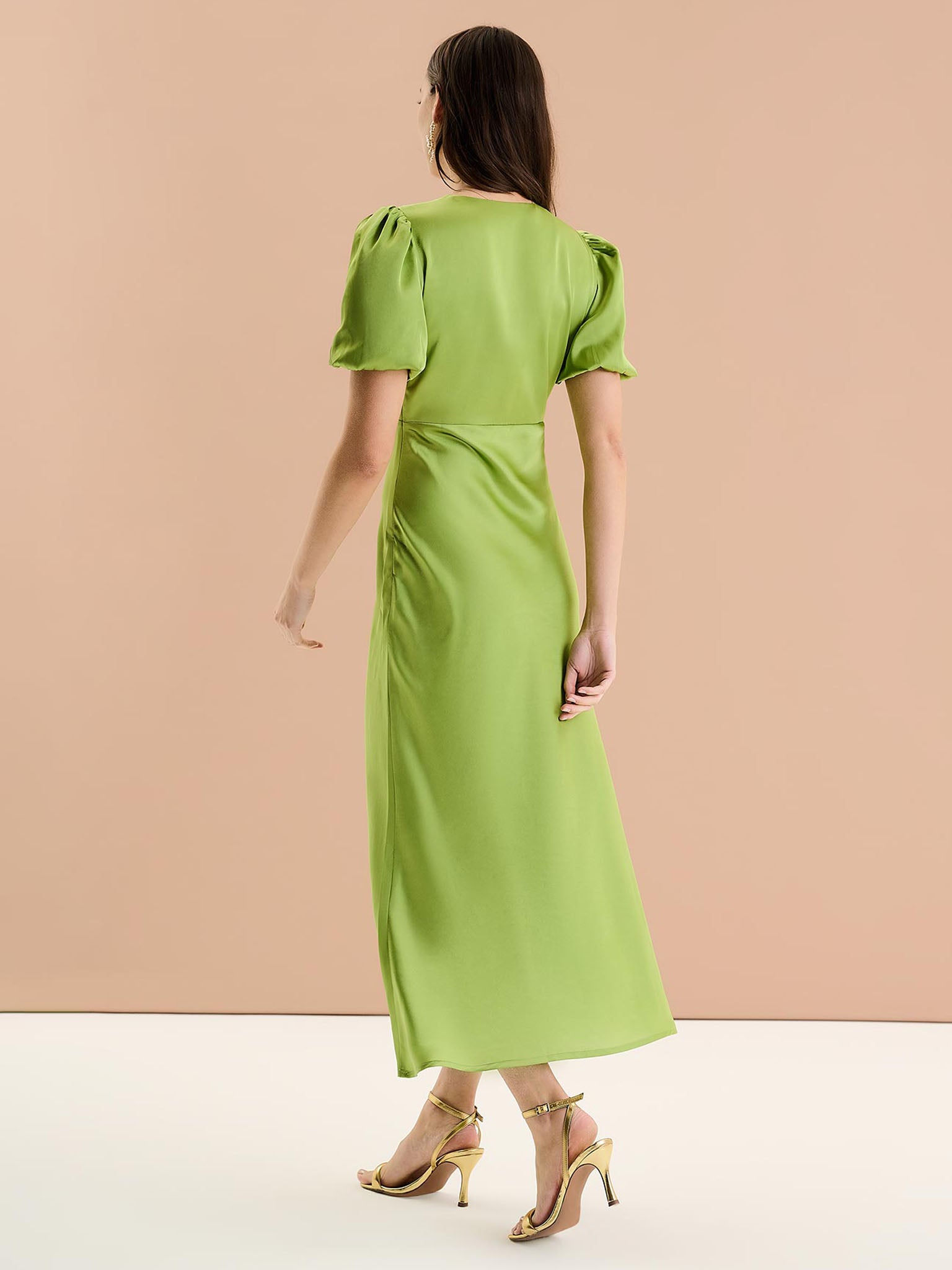 Satin Ruched Dress in Sage | Ruched dress, Casual day dresses, Fit n flare dress