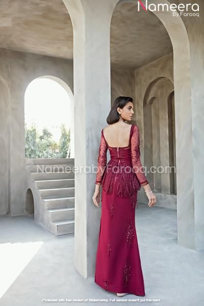 Red Embellished Short Frock with Plazo Online for Wedding â Nameera by Farooq