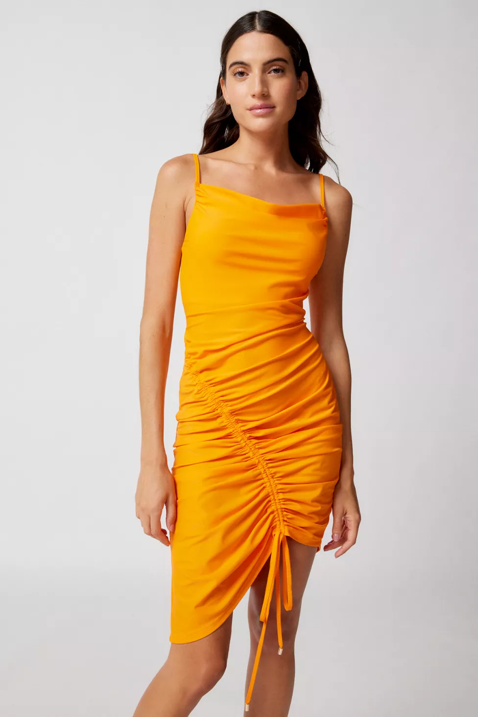 Rose Ruched Asymmetrical Tie Dress - Cider