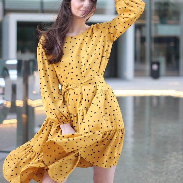Yellow polka dot printed dress by Chheent | The Secret Label