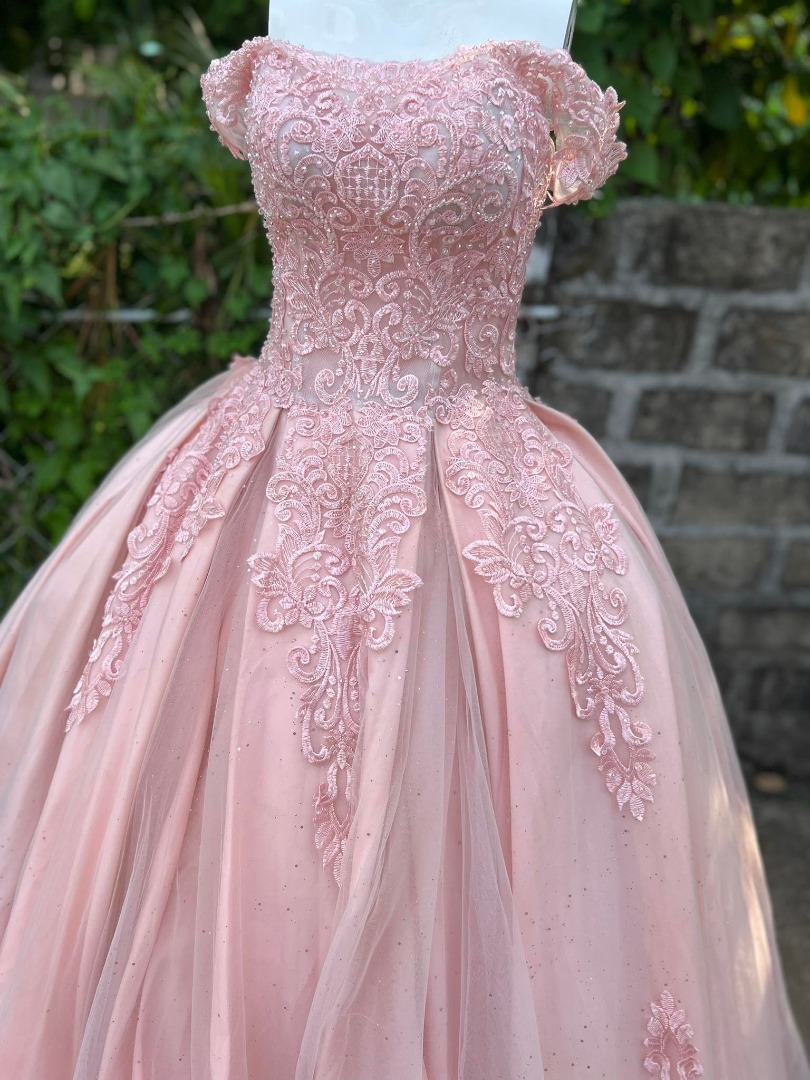 Pink Off Shoulder Gown, Women's Fashion, Clothes, Dresses & Skirts on Carousell