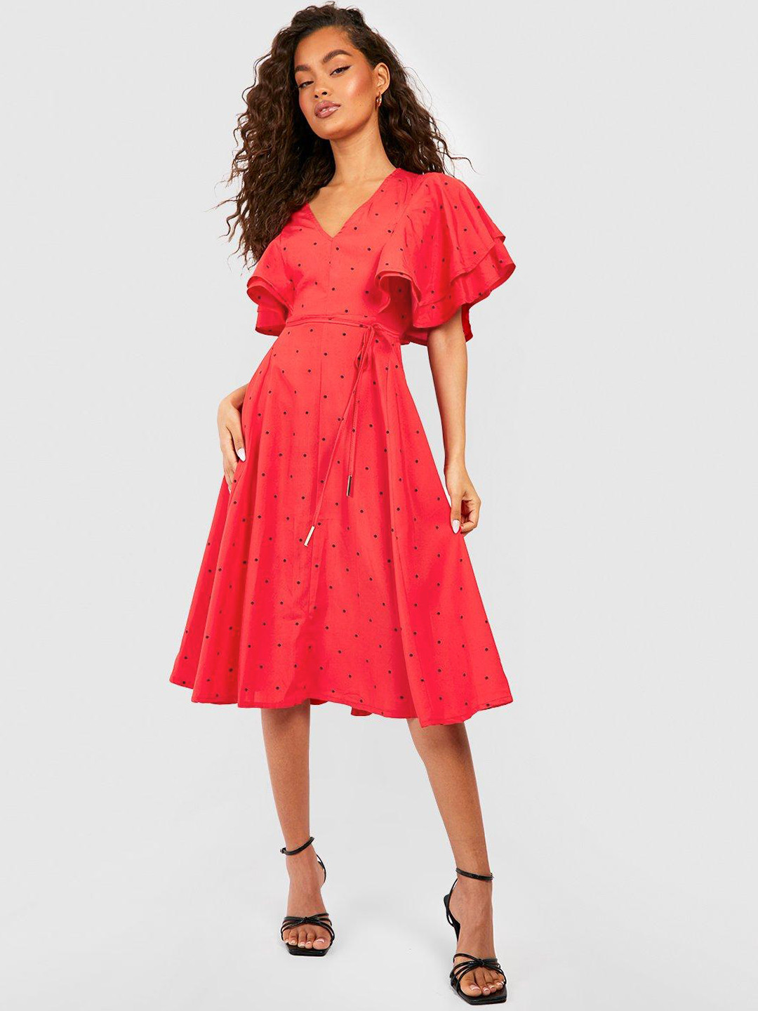 Buy Boohoo Polka Dot Print A Line Midi Dress - Dresses for Women 23542132 | Myntra