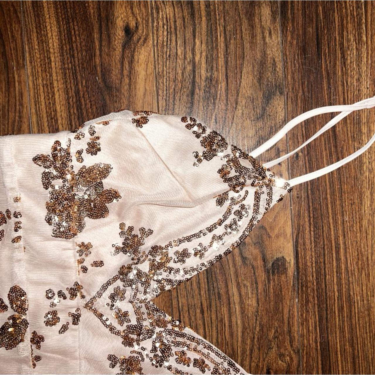 Boohoo strapless gold dress ! The sequins make it - Depop