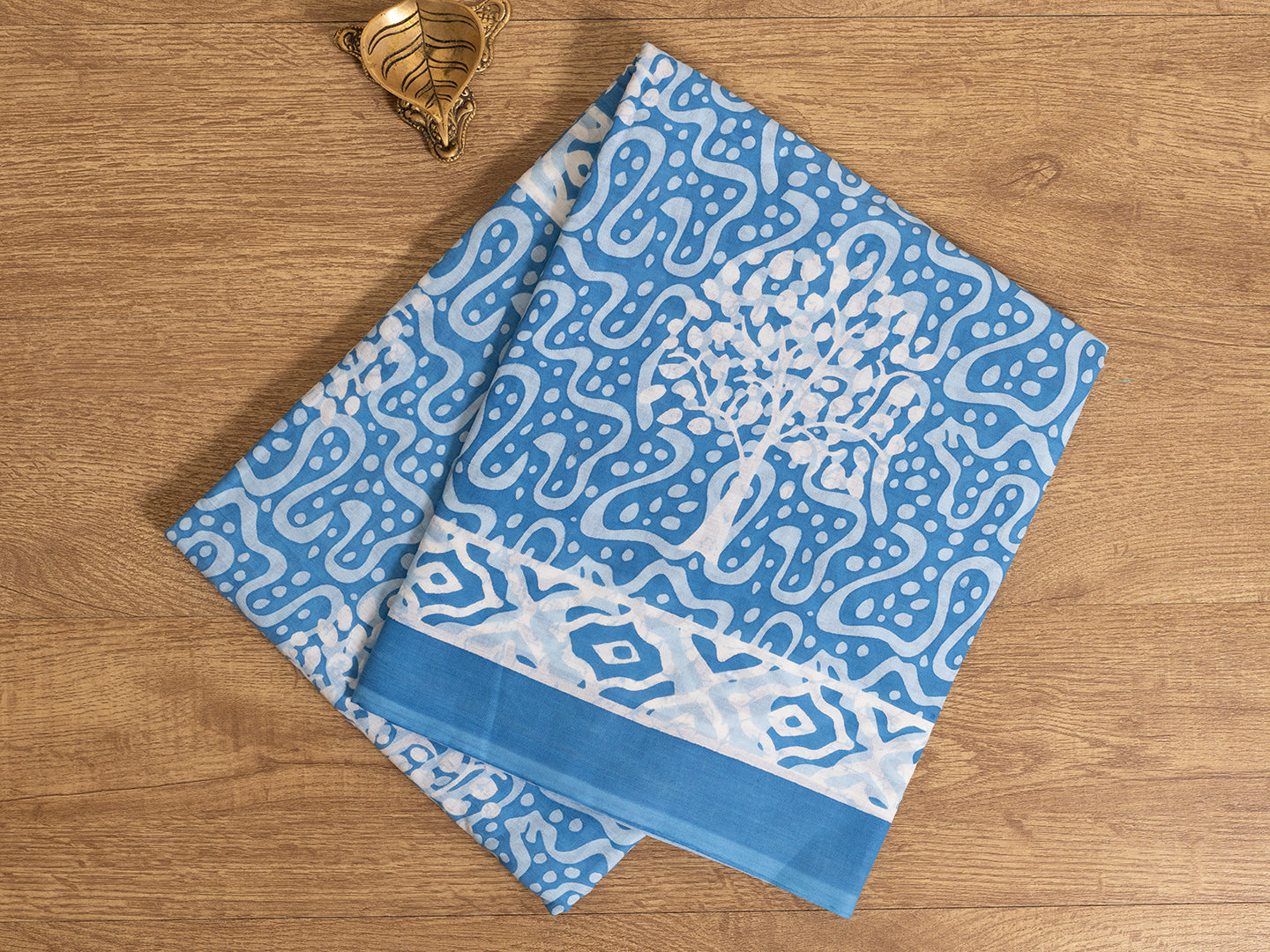 Womens Gorgeous Blue with White All over Printed Pure Cotton Saree PCS27
