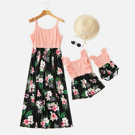 PatPat Matching Mother and Family Floral Print Ruffle Half-sleeve Dresses - Walmart.com