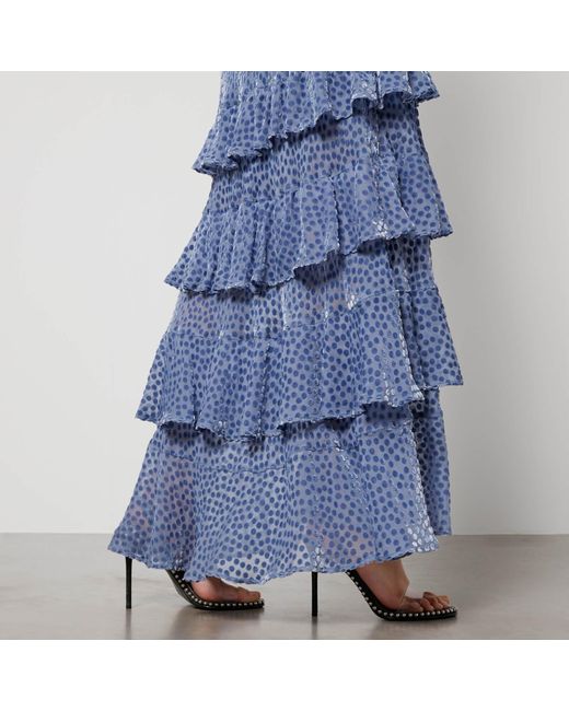 Rixo polka-dot tiered hem midi dress - Blue | Midi dress, Blue midi dress, Womens midi dresses