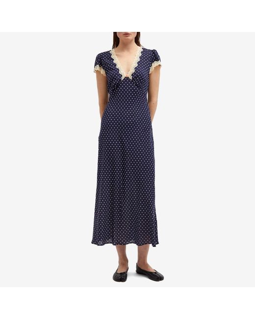 RIXO London Clarice Polka Dot Midi Dress in Blue | Lyst